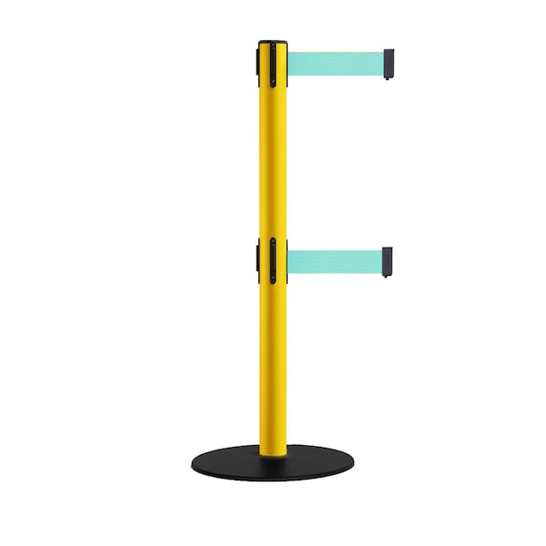 Retractable Dbl Belt 2.5" YW Post , Low Base, 11' Lt Grn Belt