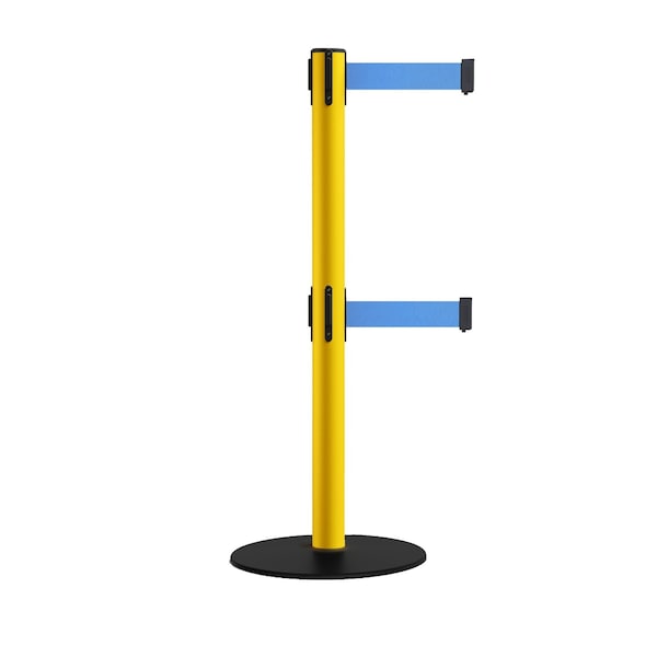 Retractable Dbl Belt 2.5" YW Post , Low Base, 7.5'Lt Blu Belt