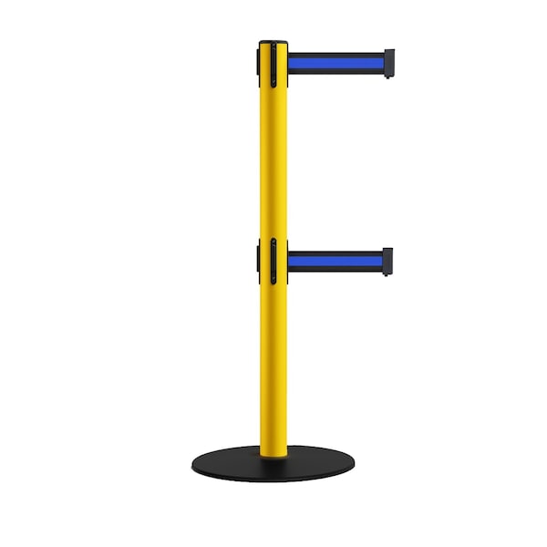 Retractable Dbl Belt 2.5" YW Post , Low Base, 9' Bk/Bl Belt