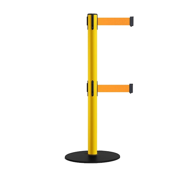 Retractable Dbl Belt 2.5" YW Post , Low Base, 9' Fl.Org Belt