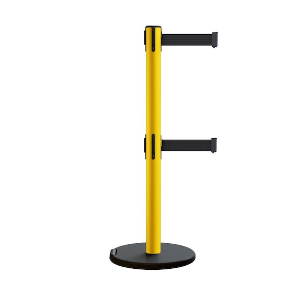 Our top quality dual belt rolling safety stanchion with twin retractable belt barriers is an ADA compatible solution for temporary crowd control and safety management. The high quality double belts extend 7.5 feet, 9 feet, 11 feet, or 13 feet long . The stumble-proof low profile metal base decreases the likelihood of tripping incidents and a convenient rolling wheel accommodates easy tip-and-roll portability.