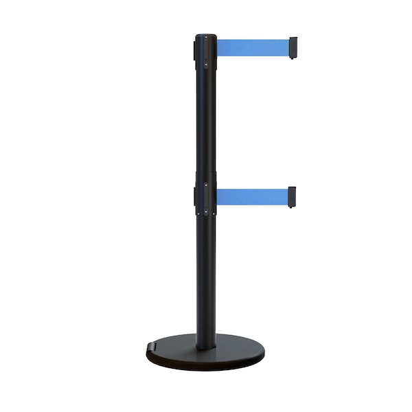 Retractable Double Belt Rolling Stanchion, Light Blue, 7.5 ft Length, 2.5 ft Post Height