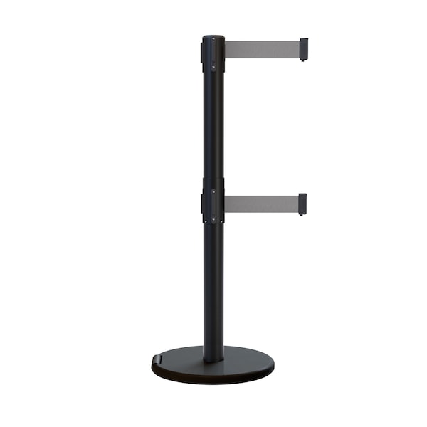 Retractable Double Belt Rolling Stanchion, Light Gray, 7.5 ft Length, 2.5 ft Post Height