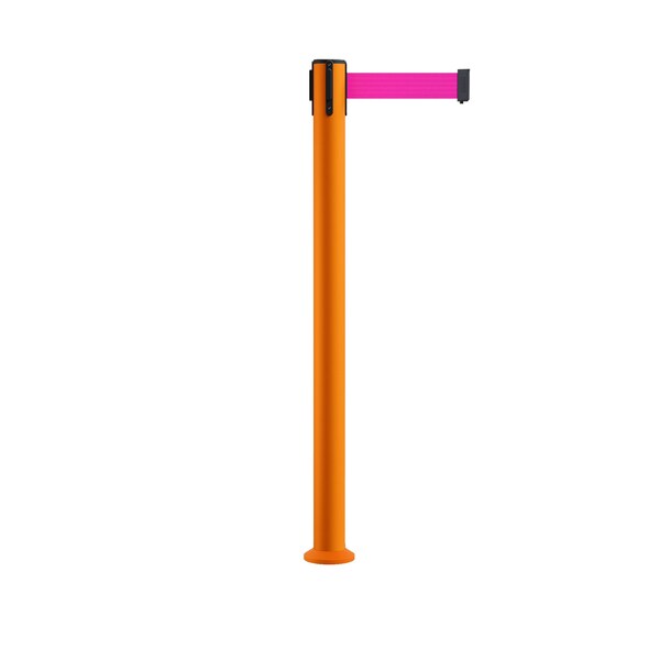 Stanchion Belt Barrier Fixed Base Orange Post 9ft.Fl. Pink Belt (Discontinued)