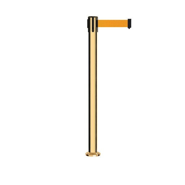 Stanchion Belt Barrier Fixed Base Pol.Brass Post 7.5ftFl. Orange Belt (Discontinued)