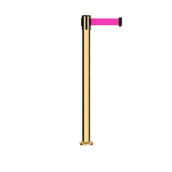 Stanchion Belt Barrier Fixed Base Pol.Brass Post 9ft.Fl. Pink Belt (Discontinued)