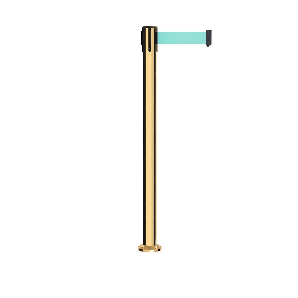 Stanchion Belt Barrier Fixed Base Pol.Brass Post 9ft.Light Green Belt (Discontinued)