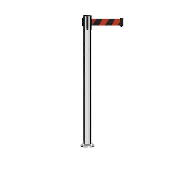 Stanchion Belt Barrier Fixed Base Pol.Steel Post 11ft.Black/Red Belt (Discontinued)