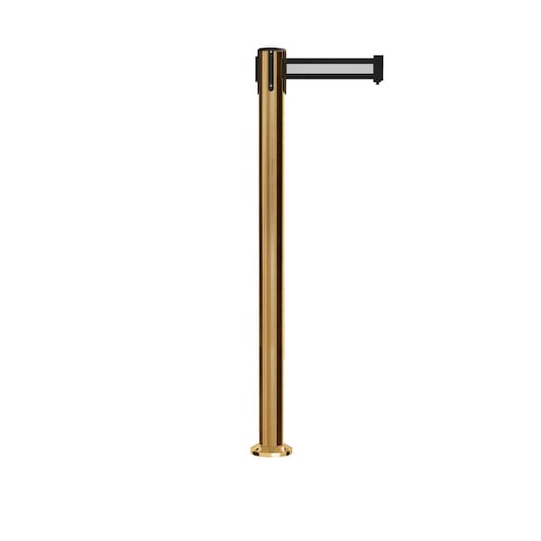 Stanchion Belt Barrier Fixed Base Sat.Brass Post 9ft.Black/Wh HL Belt (Discontinued)