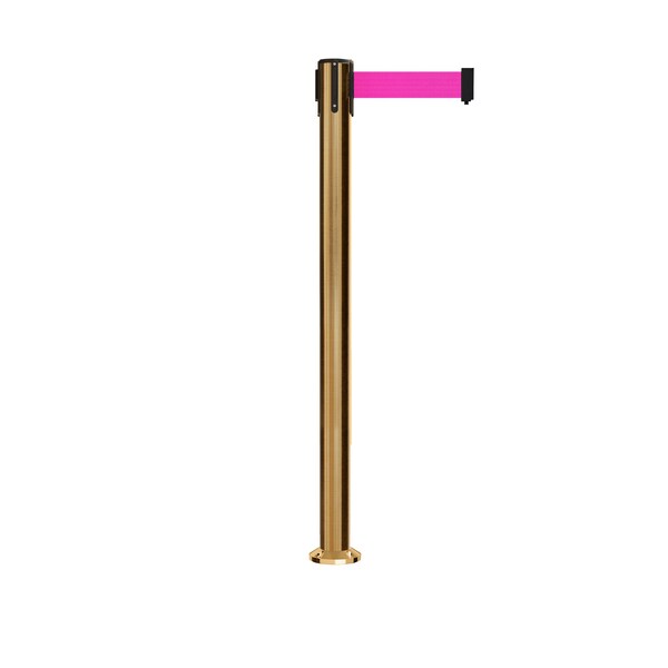 Stanchion Belt Barrier Fixed Base Sat.Brass Post 9ft.Fl. Pink Belt (Discontinued)