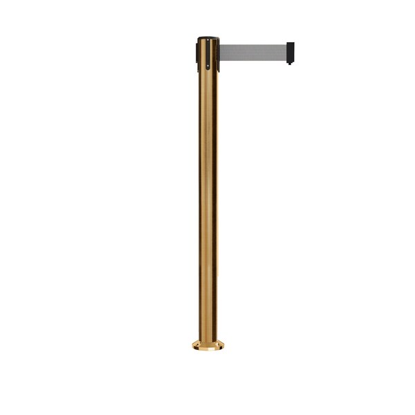 Stanchion Belt Barrier Fixed Base Sat.Brass Post 9ft.Light Grey Belt (Discontinued)