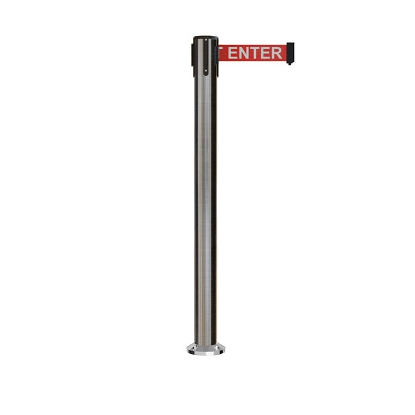 Stanchion Belt Barrier Fixed Base Sat.Steel Post 16ft.Red Caution Belt (Discontinued)