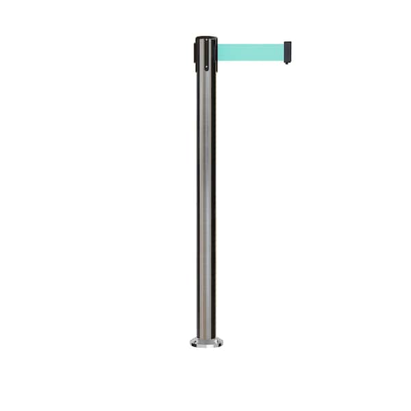 Stanchion Belt Barrier Fixed Base Sat.Steel Post 9ft.Light Green Belt (Discontinued)