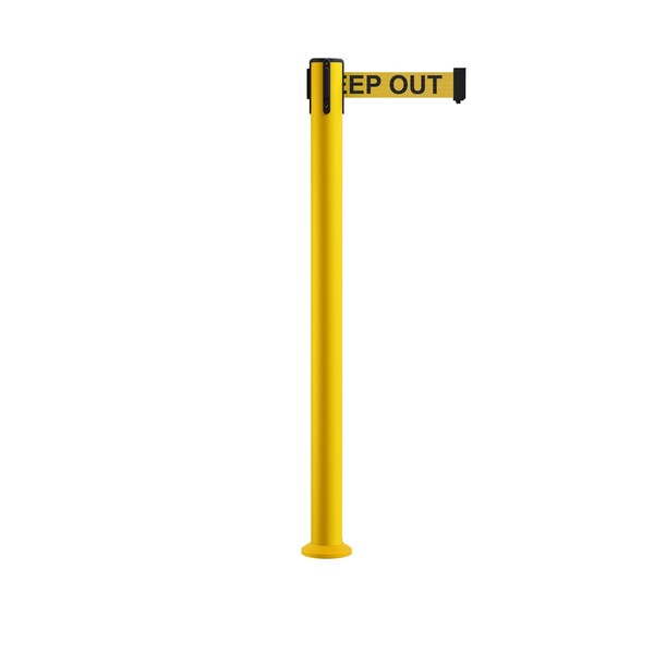 With a sturdy 2.5” post in highly visible yellow, red, or orange, this fixed retractable belt stanchion safety barriers is a popular solution for crowd control in warehouses, construction sites, or work zones. This small 5” diameter fixed base allows you to keep the floor clear and prevent tripping hazards while securely fastening stanchions flush to the floor. Designed to sustain daily use, built in belt braking technology prevents belt damage with retraction. High quality belts extend to lengths of 7.5 feet, 9 feet, and 11 feet and come in a wide variety of colors and messaging.