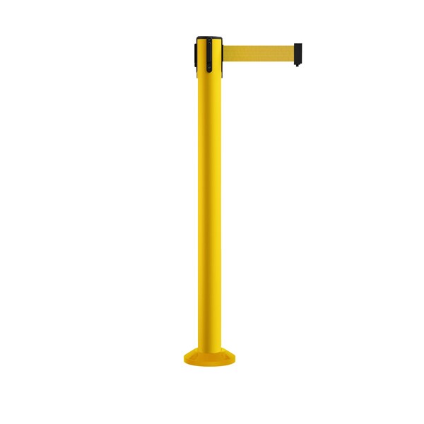 Retractable Belt Fixed Stanchion Safety Barrier: With a sturdy 3" post in highly visible yellow, red, or orange, this retractable belt barrier safety stanchion is a popular solution for crowd control in warehouses, construction sites, or work zones. A small 5” diameter fixed base allows you to keep the floor clear and prevent tripping hazards while securely fastening stanchions flush to the floor. Designed to sustain daily use, built in belt braking technology prevents belt damage with retraction. High quality belts extend to lengths of 14 feet and 16 feet and come in a wide variety of colors and messaging
