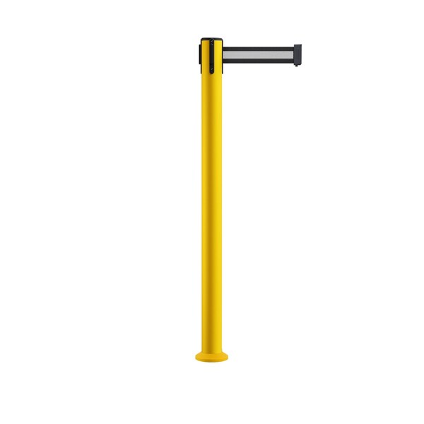 With a sturdy 2.5” post in highly visible yellow, red, or orange, this fixed retractable belt stanchion safety barriers is a popular solution for crowd control in warehouses, construction sites, or work zones. This small 5” diameter fixed base allows you to keep the floor clear and prevent tripping hazards while securely fastening stanchions flush to the floor. Designed to sustain daily use, built in belt braking technology prevents belt damage with retraction. High quality belts extend to lengths of 7.5 feet, 9 feet, and 11 feet and come in a wide variety of colors and messaging.