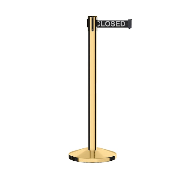 Retractable Belt Stanchion Barriers: This reliable retractable belt barrier stanchion is a high quality solution for crowd control and queue management. Sleek 2.5" diameter posts are secured to a sturdy concrete base with full-circumference rubber floor protector to provide stability without damaging floors. These versatile stanchions are designed to sustain daily use with built in belt braking technology to prevent belt damage with retraction. High quality belts extend to lengths of 7.5 feet, 9 feet, 11 feet, or 13 feet and come in a wide variety of colors and messaging.