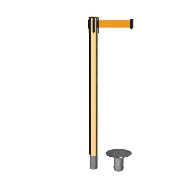Stanchion Belt Barrier Removable Base Pol.Brass Post 9ft.Fl.Org Belt (Discontinued)