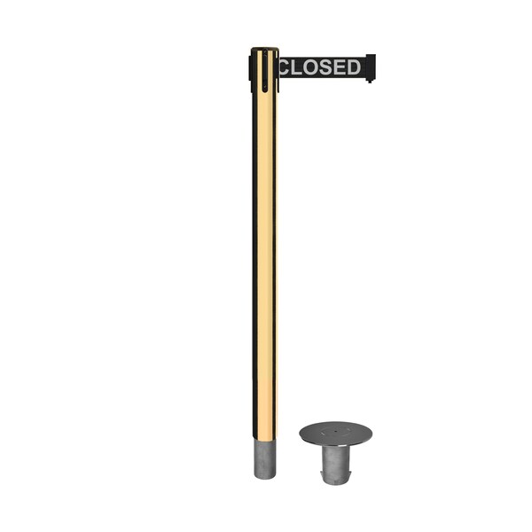 A retractable belt barrier with 2.5" diameter post and 5” floor socket allows for fixed, removable installation, maintaining clear floor space and minimal tripping hazards while the stanchion is in place. A socket cap allows for discrete socket closure when the barrier is no longer needed. These versatile stanchions are designed to sustain daily use with built in belt braking technology to prevent belt damage with retraction. High quality belts extend to lengths of 7.5 feet, 9 feet, or 11 feet and come in a wide variety of colors and messaging.
