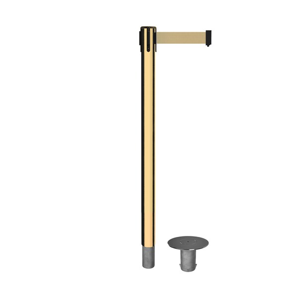 Stanchion Belt Barrier Removable Base Pol.Brass Post 9ft.Lt BrwnBelt (Discontinued)
