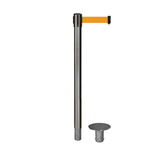Stanchion Belt Barrier Removable Base Sat.Steel Post 9ft.Fl.Org Belt (Discontinued)
