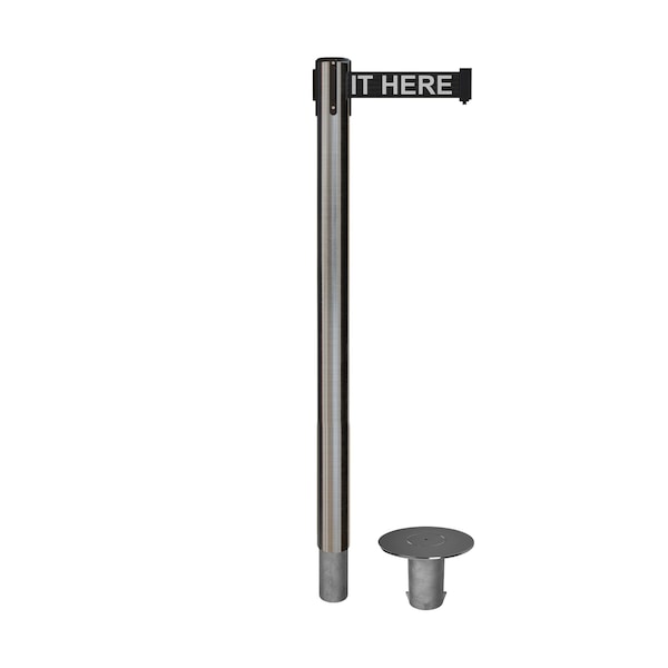 A retractable belt barrier with 2.5" diameter post and 5” floor socket allows for fixed, removable installation, maintaining clear floor space and minimal tripping hazards while the stanchion is in place. A socket cap allows for discrete socket closure when the barrier is no longer needed. These versatile stanchions are designed to sustain daily use with built in belt braking technology to prevent belt damage with retraction. High quality belts extend to lengths of 7.5 feet, 9 feet, or 11 feet and come in a wide variety of colors and messaging.