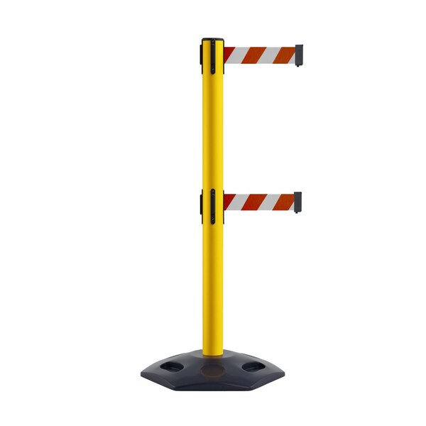 Stanchion Dual Belt Barr. Rubber Base Yellow Post 7.5ftRd/Wh Belt (Discontinued)