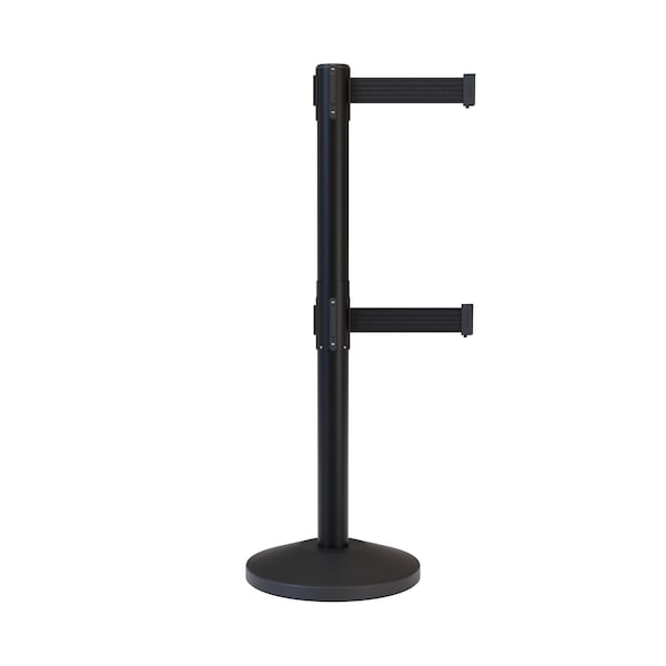 Stanchion Dual Belt Barrier Black Post 13ft. Black Belt