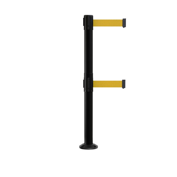 Stanchion Dual Belt Barrier Fixed Base Black Post 11ft.Yellow Belt (Discontinued)