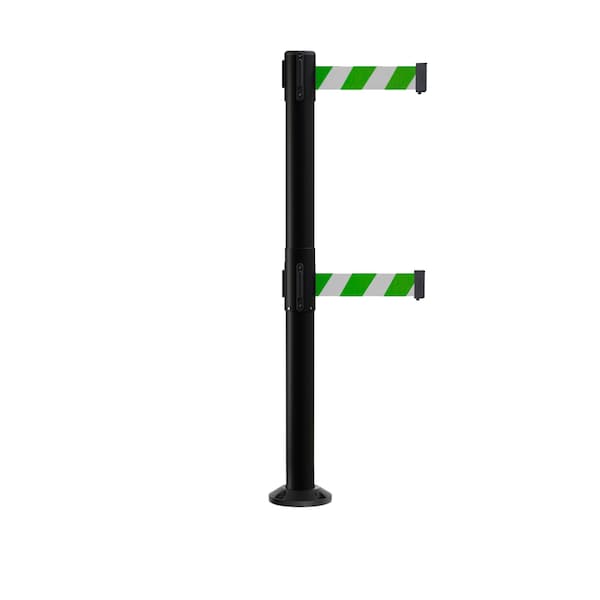 Stanchion Dual Belt Barrier Fixed Base Black Post 7.5ftGrn/Wh Belt
