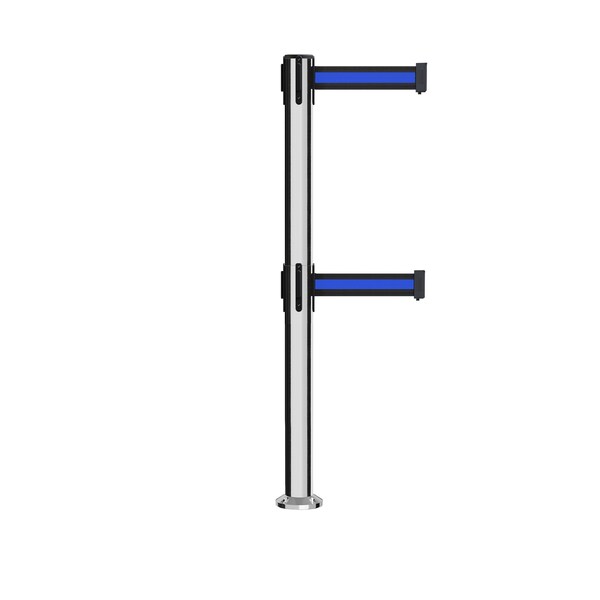 Stanchion Dual Belt Barrier Fixed Base Pol.Steel Post 11ft.Bk/Bl Belt (Discontinued)