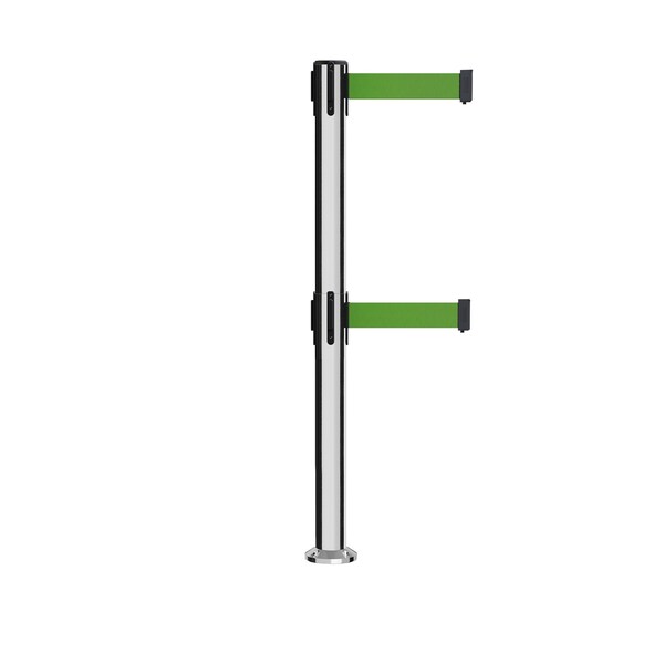 Stanchion Dual Belt Barrier Fixed Base Pol.Steel Post 7.5ftGreen Belt (Discontinued)