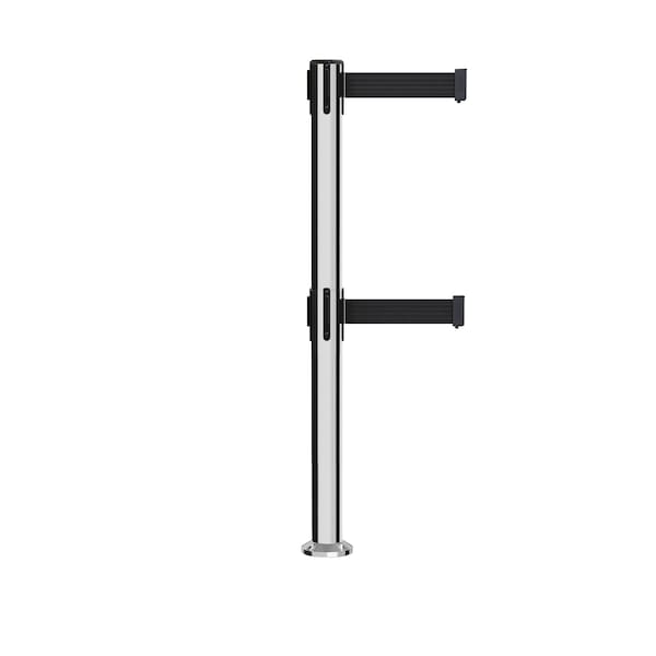 Stanchion Dual Belt Barrier Fixed Base Pol.Steel Post 9ft.Black Belt (Discontinued)