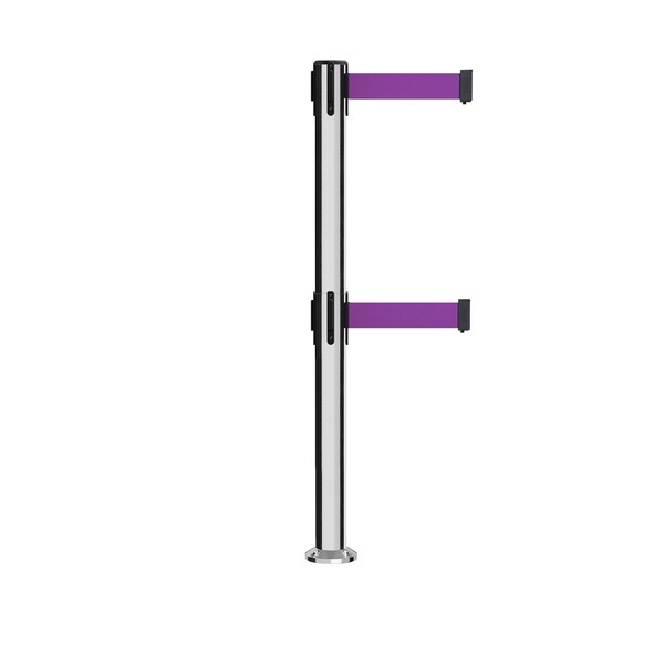Stanchion Dual Belt Barrier Fixed Base Pol.Steel Post 9ft.Purple Belt (Discontinued)