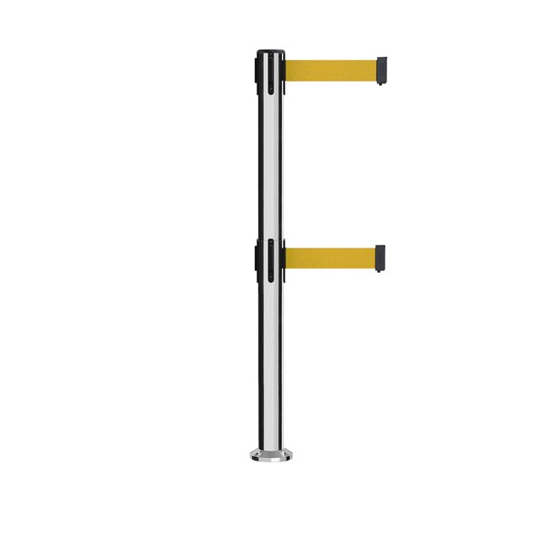 Stanchion Dual Belt Barrier Fixed Base Pol.Steel Post 9ft.Yellow Belt (Discontinued)