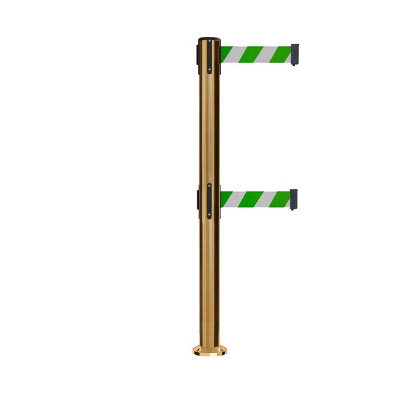 Stanchion Dual Belt Barrier Fixed Base Sat.Brass Post 11ft.Grn/Wh Belt (Discontinued)