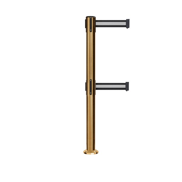 Stanchion Dual Belt Barrier Fixed Base Sat.Brass Post 7.5ftBk/W H Belt (Discontinued)