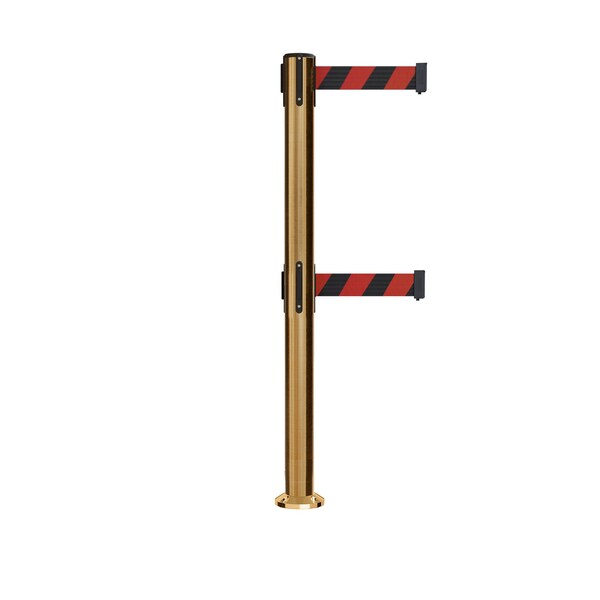 Stanchion Dual Belt Barrier Fixed Base Sat.Brass Post 7.5ftBlk/Rd Belt (Discontinued)