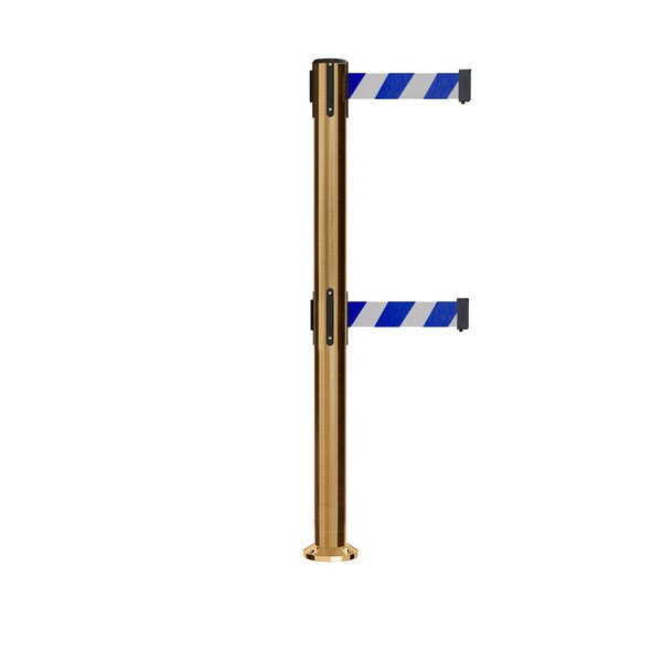 Stanchion Dual Belt Barrier Fixed Base Sat.Brass Post 7.5ftBlu/Wh Belt (Discontinued)