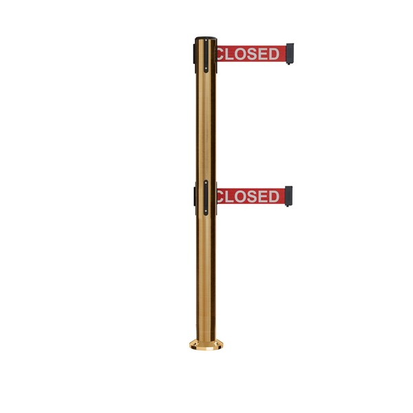 Stanchion Dual Belt Barrier Fixed Base Sat.Brass Post 7.5ftClose..Belt (Discontinued)
