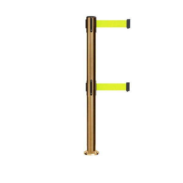 Stanchion Dual Belt Barrier Fixed Base Sat.Brass Post 7.5ftFl.Yel Belt (Discontinued)