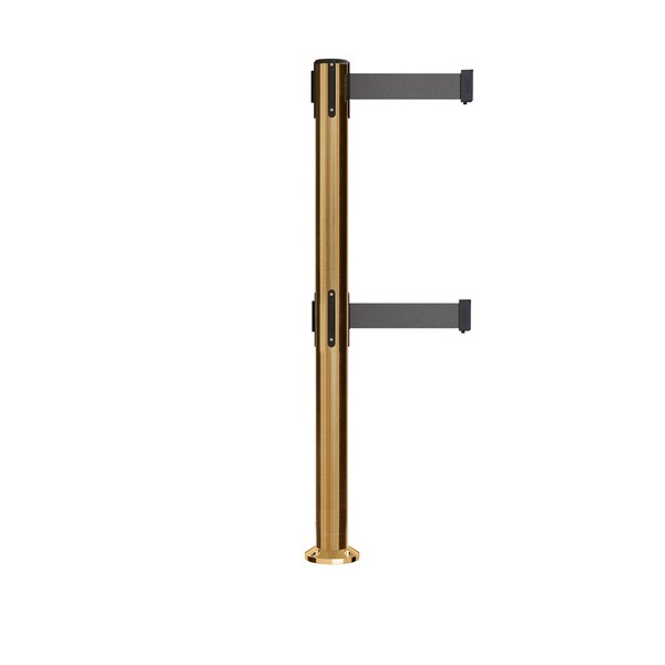 Stanchion Dual Belt Barrier Fixed Base Sat.Brass Post 9ft.Dk Gry Belt (Discontinued)
