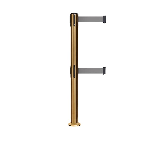 Stanchion Dual Belt Barrier Fixed Base Sat.Brass Post 9ft.Lt Gry Belt (Discontinued)