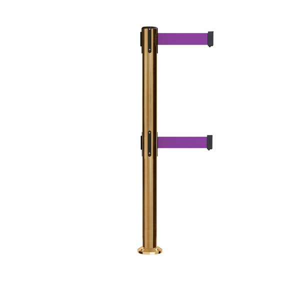 Stanchion Dual Belt Barrier Fixed Base Sat.Brass Post 9ft.Purple Belt (Discontinued)