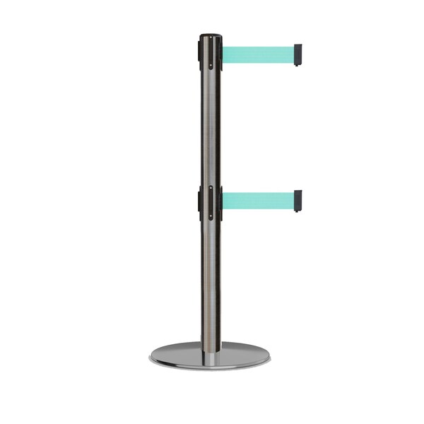 Stanchion Dual Belt Barrier Fixed Base Sat.Steel Post 11ft.Lt Grn Belt (Discontinued)