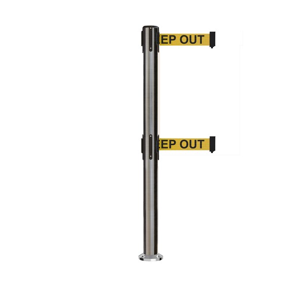 Stanchion Dual Belt Barrier Fixed Base Sat.Steel Post 7.5ftDange..Belt (Discontinued)