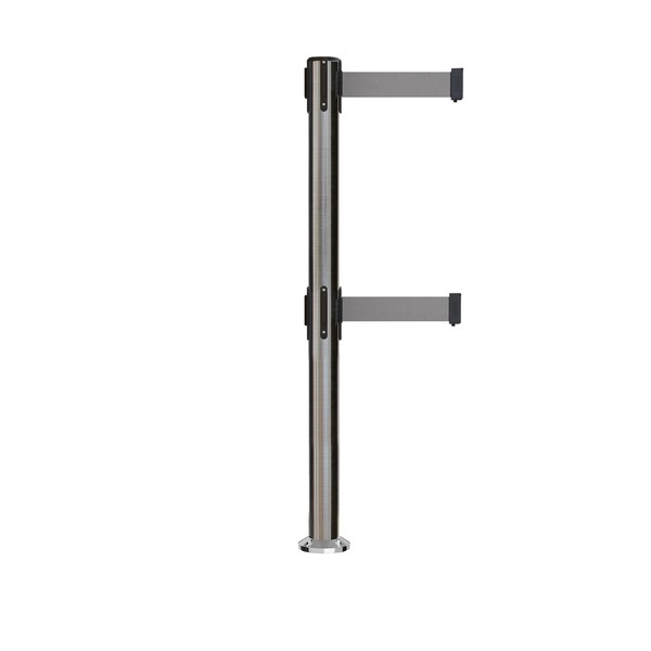 Stanchion Dual Belt Barrier Fixed Base Sat.Steel Post 7.5ftLt Gry Belt (Discontinued)