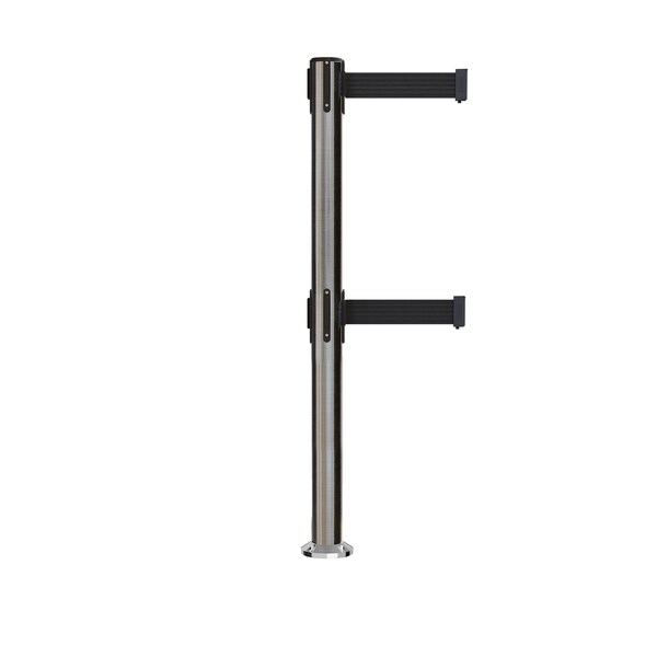 Stanchion Dual Belt Barrier Fixed Base Sat.Steel Post 9ft.Black Belt (Discontinued)