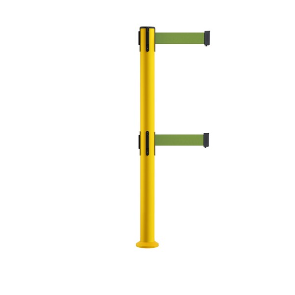 Stanchion Dual Belt Barrier Fixed Base Yellow Post 11ft.Olive Belt (Discontinued)
