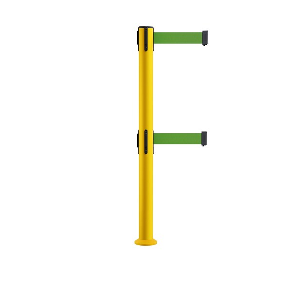 Stanchion Dual Belt Barrier Fixed Base Yellow Post 9ft.Green Belt (Discontinued)